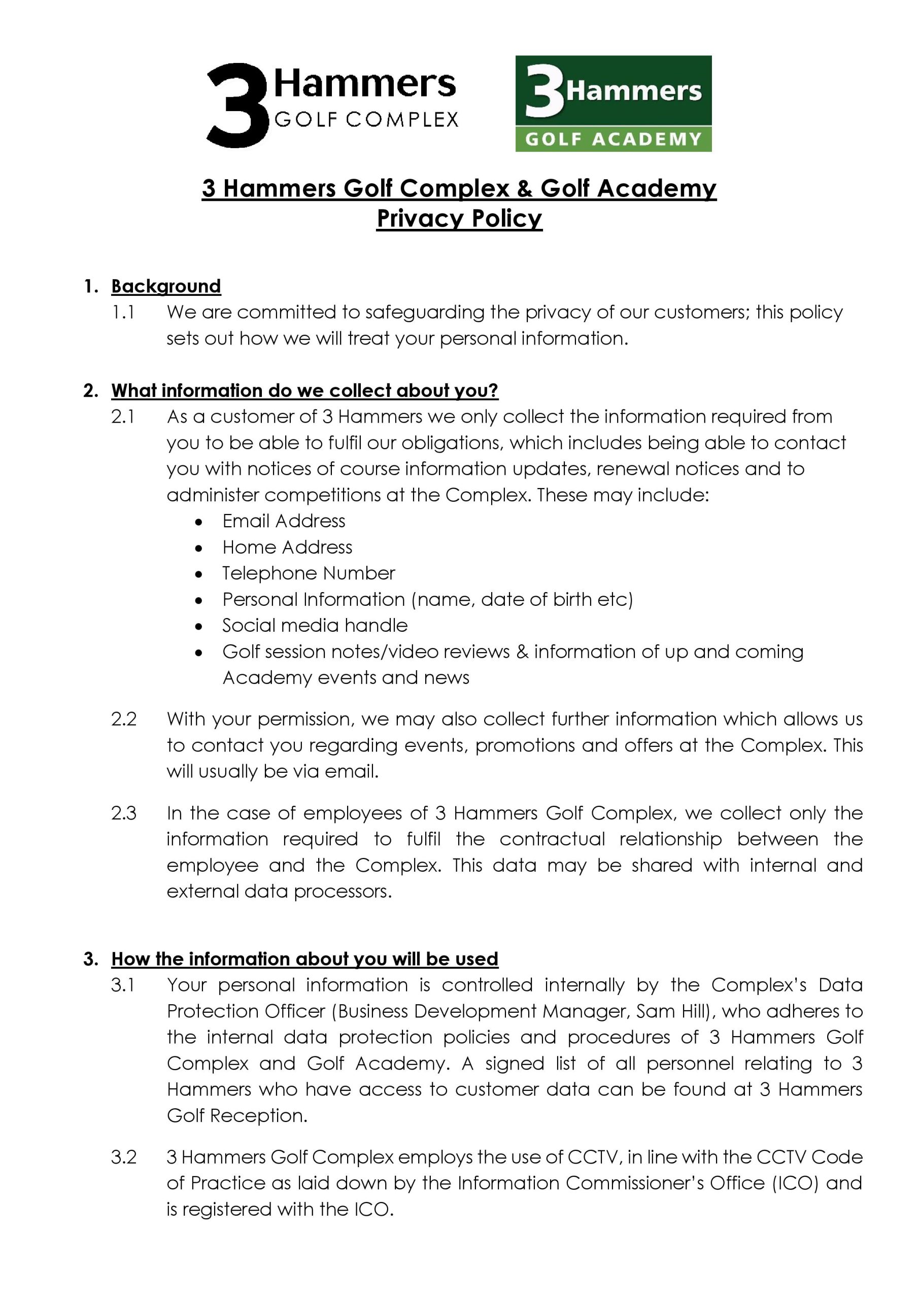 Our 3 Hammers gift vouhers make the perfect gift and can be used on the Driving Range & Par 3 Course.